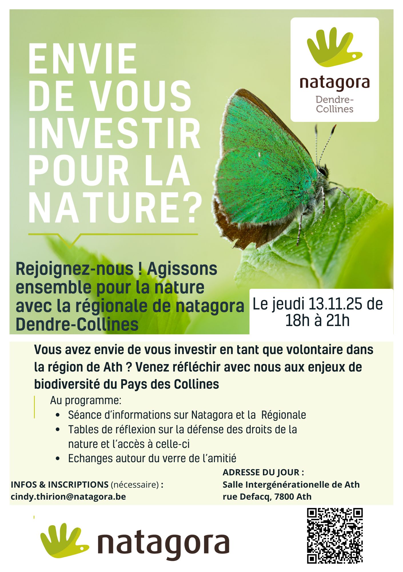 Elle organise un apéro-d'info le jeudi 13 novembre 2025, pour échanger sur les possibilités de s'investir en tant que volontaire dans la région de Ath.