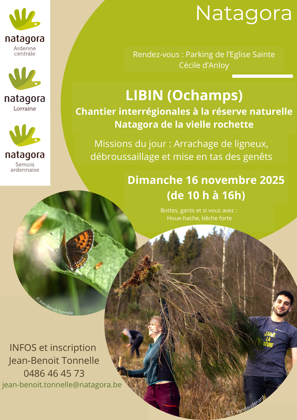 Rejoignez-nous à la réserve naturelle de la Vieille Rochette, située à Anloy, entre Libin et Bertrix, pour un grand Chantier interrégionales de gestion de la nature.Ce site remarquable abrite une grande diversité de milieux humides et prairiaux, ainsi qu’un étang à littorelle unique en Ardenne. Sa richesse en flore, libellules, papillons et oiseaux en fait un véritable joyau de biodiversité.
