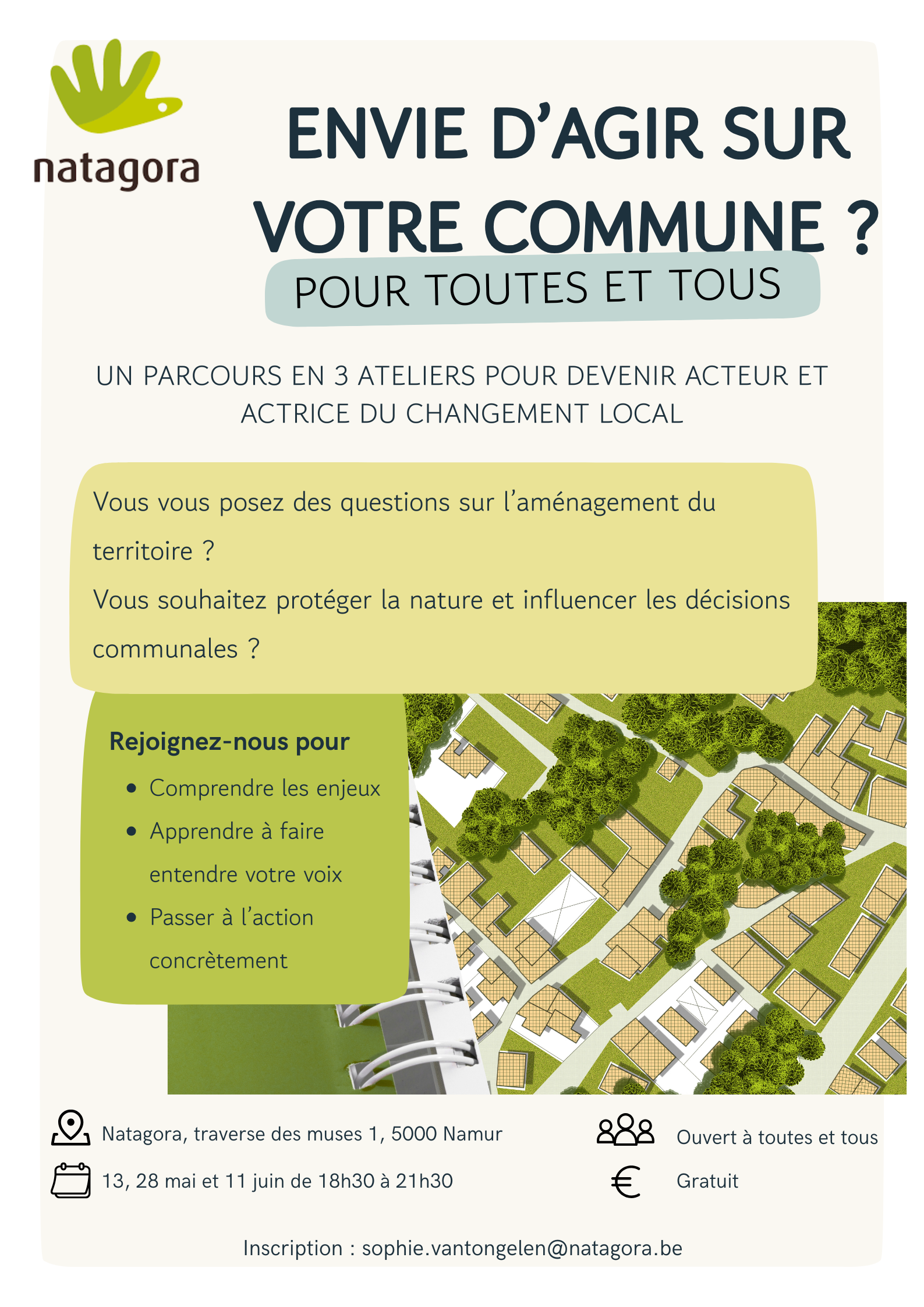 Ces ateliers visent à accompagner les personnes qui souhaitent s'investir dans leur commune, soit en réaction à des projets destructeurs de biodiversité soit en amont, en participant aux réflexions et aux règles définies par les communes, comme les schémas de développement communaux.